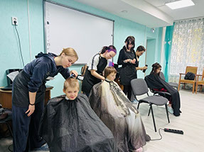 Преподаватель ГАПОУ НСО «Новосибирского колледжа парикмахерского искусства» Косницкая Татьяна Юрьевна вместе со своими студентами организовали и провели стрижку для наших воспитанников.